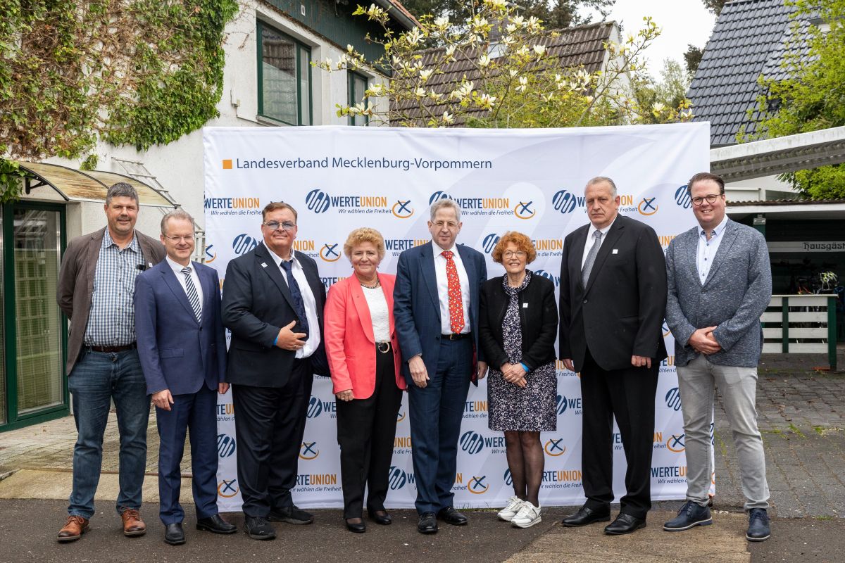 Auf dem Bild von links nach rechts: Mario Mundt, Dr. Matthias Manthei, René Becker, Sylvia Pantel, Dr. Hans-Georg Maaßen, Stefanie Voigt, Daniel Gallien, Dr. Rolf Dahmen  Wir wachsen weiter. Die WerteUnion hat am Sonntag, den 5. Mai 2024, in Binz auf Rügen den Landesverband Mecklenburg-Vorpommern gegründet. Nach Thüringen, Sachsen und